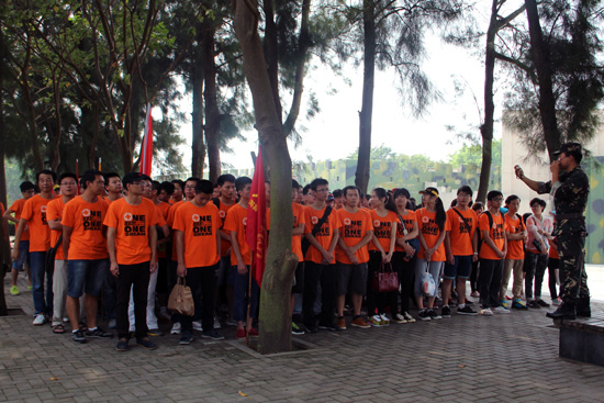 當(dāng)天抵達(dá)大嶝島后,整個(gè)大團(tuán)隊(duì)被分成兩個(gè)連隊(duì):“尖刀連”和“英雄連”,并分成了八個(gè)小隊(duì)。首當(dāng)其沖迎接所有員工的就是教官嚴(yán)格的軍訓(xùn)。一個(gè)口令,一個(gè)動(dòng)作,都必須執(zhí)行到位。一開(kāi)始團(tuán)隊(duì)因?yàn)椴贿m應(yīng)還帶著點(diǎn)懶懶散散,教官不留情面,直接處罰,命令所有人抱頭蹲地,原地蹬腿。接著又因?yàn)榧贤侠珕T罰做俯臥撐。經(jīng)過(guò)一番雕琢后,我們的大團(tuán)隊(duì)拿出了應(yīng)有的紀(jì)律和氣勢(shì),走入了下一個(gè)環(huán)節(jié)。