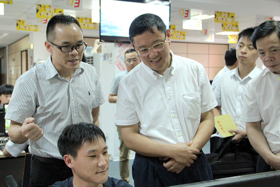 2015年8月19日下午,福建省委組織部常務副部長、非公企業黨工委書記袁毅,在中共泉州市委常委、組織部長陳沈陽,泉州市委組織部副部長張翼翔,豐澤區人民政府區長朱啟平,豐澤區委組織部長駱紅,領SHOW天地黨委書記鄭巍萍陪同下,蒞臨了訊網科技參觀考察。