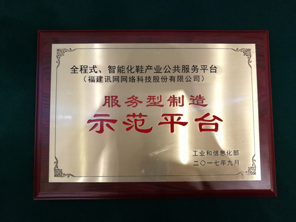 “近日,工信部發(fā)布《2017年服務(wù)型制造示范企業(yè)(項(xiàng)目、平臺(tái))名單》,訊網(wǎng)網(wǎng)絡(luò)(證券代碼:839825)以全程式、智能化鞋產(chǎn)業(yè)公共服務(wù)平臺(tái)的模式,成功入選服務(wù)型制造示范平臺(tái)組名單。這是訊網(wǎng)網(wǎng)絡(luò)在連續(xù)四次入選商務(wù)部公布的“電子商務(wù)示范企業(yè)”名單后的再一國(guó)家級(jí)殊榮。”
