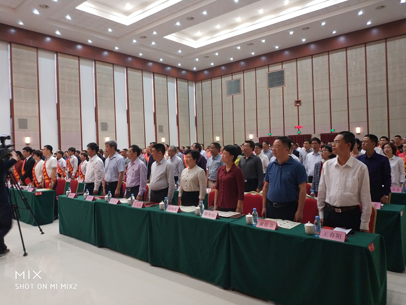 市領導康濤、陳燦輝、洪自強、孔繁軍等出席表彰大會,并為全市勞動模范和先進工作者頒獎。