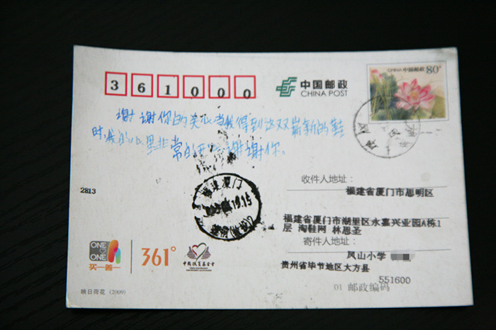 淘鞋網(wǎng)一直致力于愛心公益活動,昨日,公司意外的收到了受捐助的山區(qū)孩子們寄來的禮物——一張張小小的明信片,里面寫滿了孩子們感謝的話語。稚嫩的筆伐里,承載了孩子們滿滿的謝意。