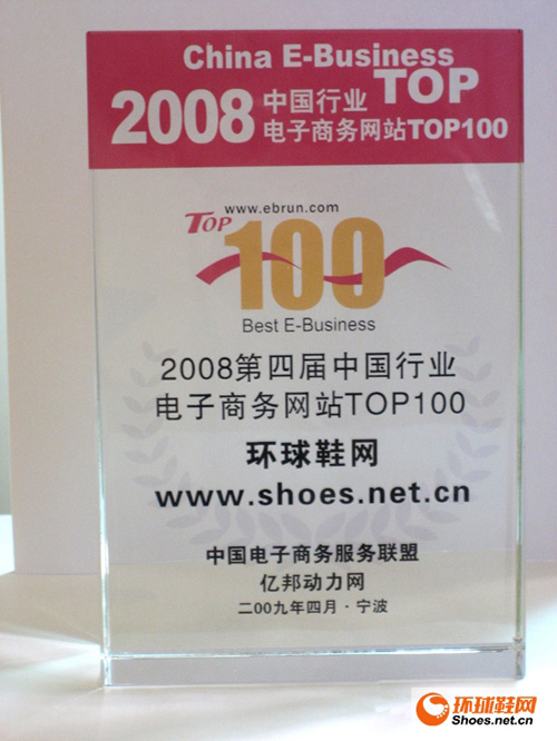 環球鞋網訊 2009年4月17日,由億邦動力網、中國電子商務服務聯盟攜手寧波市信息產業局、寧波國家高新技術產業開發區共同主辦的“聯想揚天?(第四屆)中小企業電子商務應用發展大會暨2008年中國行業電子商務網站 TOP100頒獎典禮”在寧波隆重召開,環球鞋網榮獲了“2008...